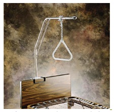 An important patient-room accessory designed to help patients change positions while in bed and to aid in transfer from bed to chair with minimum attendant assistance. Invacare's trapeze unit has a wide range of height adjustments and handbar to maximize patient accessibility. The unit can be installed quickly and easily on an Invacare floor stand to be used with any model bed or attached directly to any Invacare Home Care Bed. |